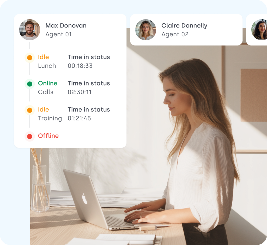 As their status changes, the system automatically reflects these updates and adjusts call routing accordingly. This ensures that incoming calls are directed only to available agents, reducing wait times and improving overall efficiency.