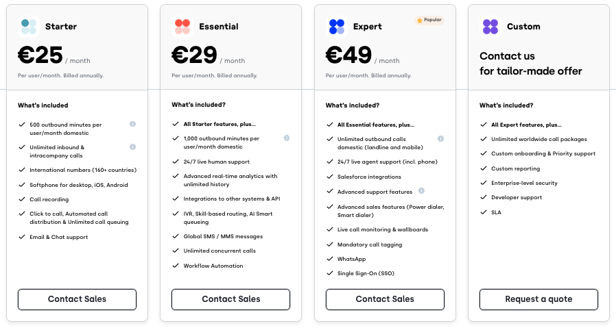 - Affordable Pricing: Plans start at 25 per user/month, with additional numbers for just $6.