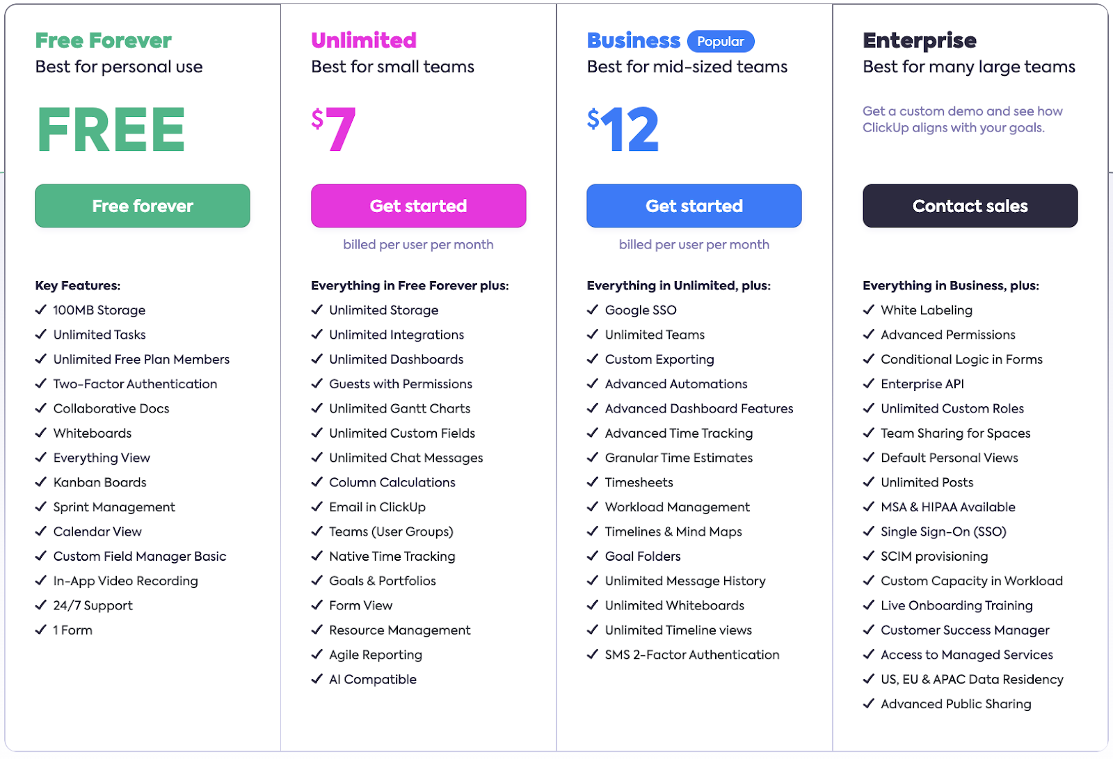 - Free Plan: Basic project and task management features.