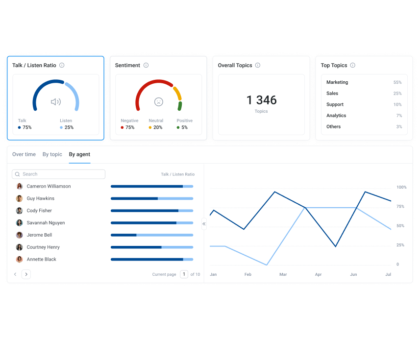 With CloudTalk’s AI-powered Analytics, you can spot skill gaps, identify common challenges, and check whether agents may need extra support. For managers, this means smarter coaching and more impactful call monitoring.