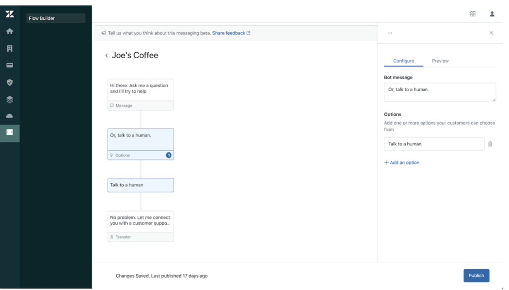 Zendesk Answer Bot automates responses to common queries, helping insurance agents resolve customer issues faster. Its AI-powered Flow Builder allows for smooth automation of customer interactions, reducing support costs and improving CSAT.