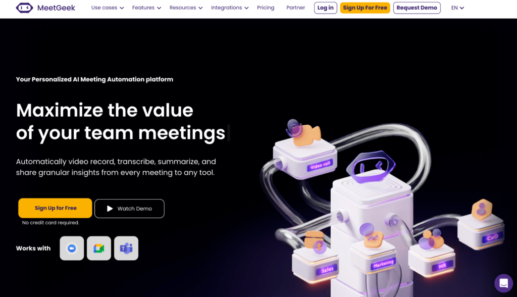 MeetGeek is an AI meeting platform that empowers sales teams to automatically record, transcribe, and summarize meetings with ease. It extracts key topics, action items, and insights using AI, helping teams stay aligned and efficient.