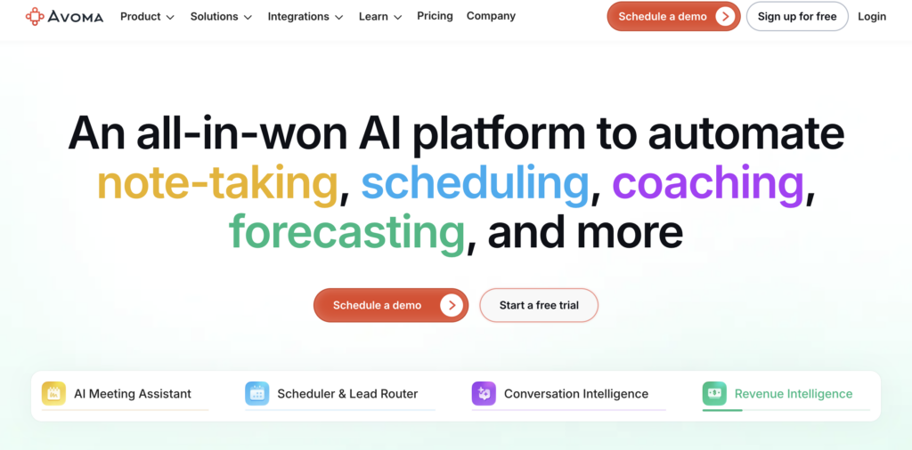 Avoma is a conversation and revenue intelligence tool that helps entrepreneurs streamline workflows, enhance productivity, and gain actionable insights to close more deals and retain customers. It automates lead routing, note-taking, CRM updates, coaching, and forecasting—all from a single platform.