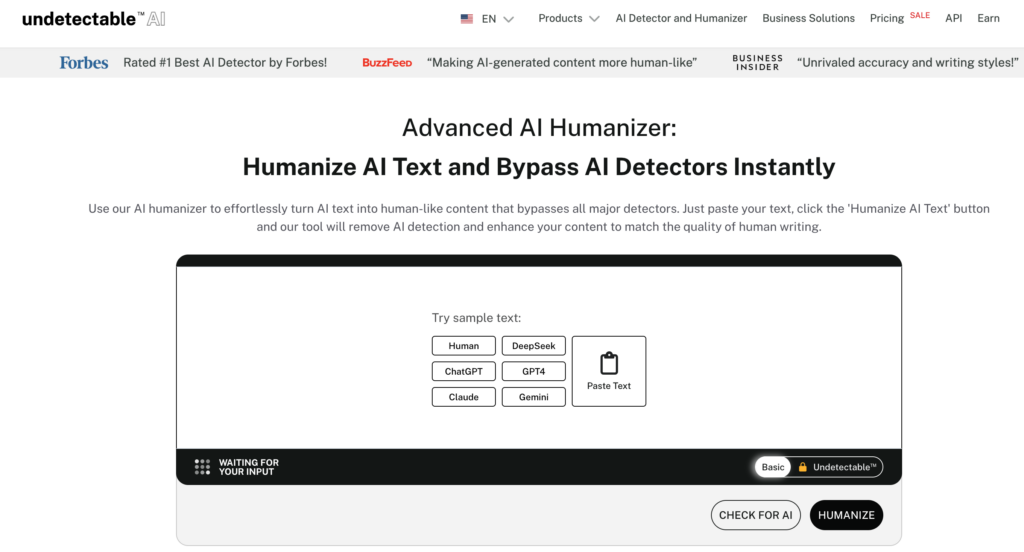 Undetectable Ai is the go-to AI humanizer for entrepreneurs who want their AI-generated content to sound natural, authentic, and undetectable. Whether you’re writing emails, blog posts, social media captions, or marketing copy, Undetectable Ai ensures your message comes across as genuinely human. It helps entrepreneurs save time while maintaining the personal touch that connects with their audience—without getting flagged by AI detection tools.
