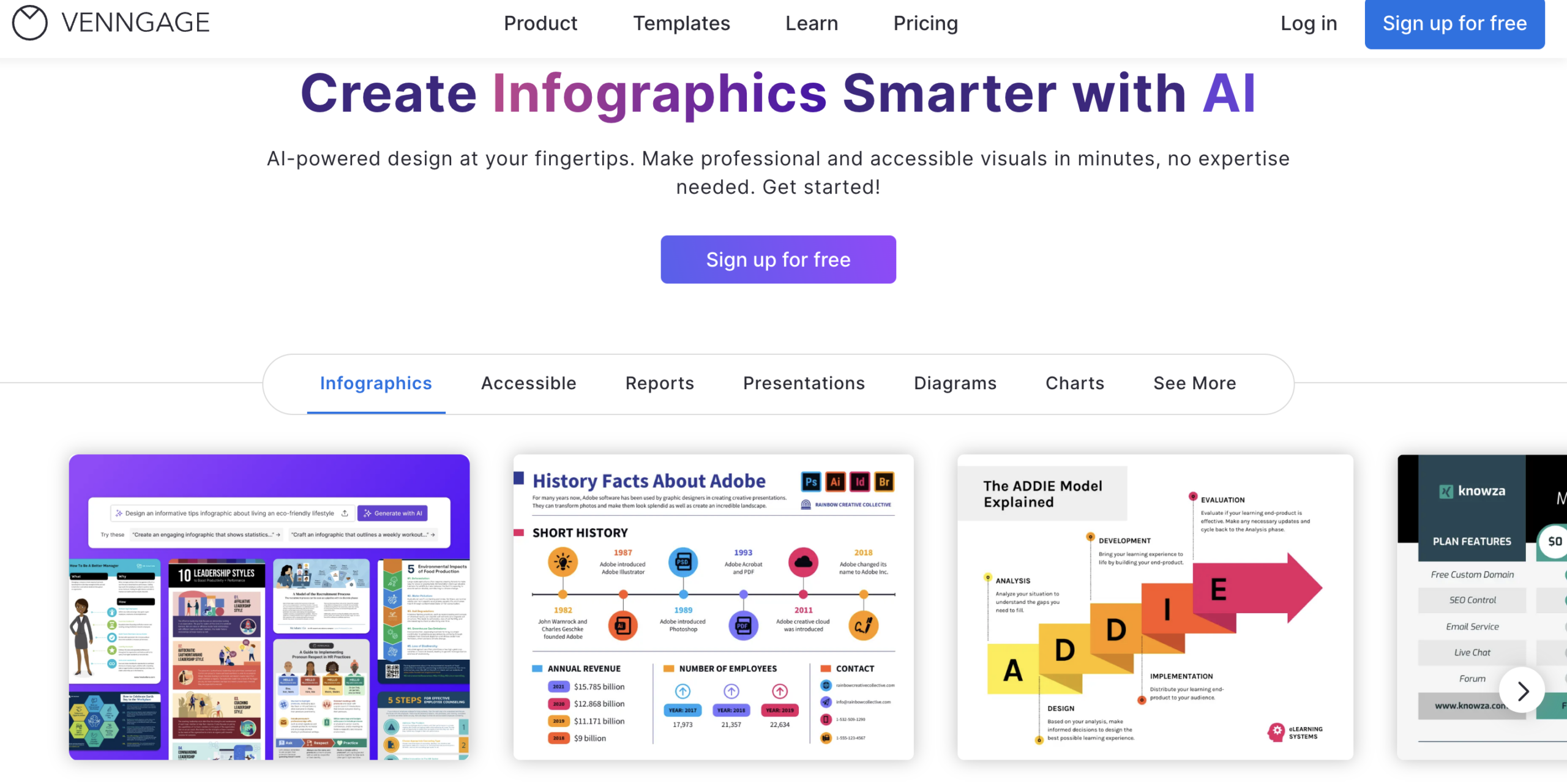 Venngage‘s AI tools make creating professional infographics, posters, and brochures easy in minutes. Whether designing internal communication materials or business reports, AI-powered automation ensures your visuals are polished, on-brand, and effective—without the need for design expertise.