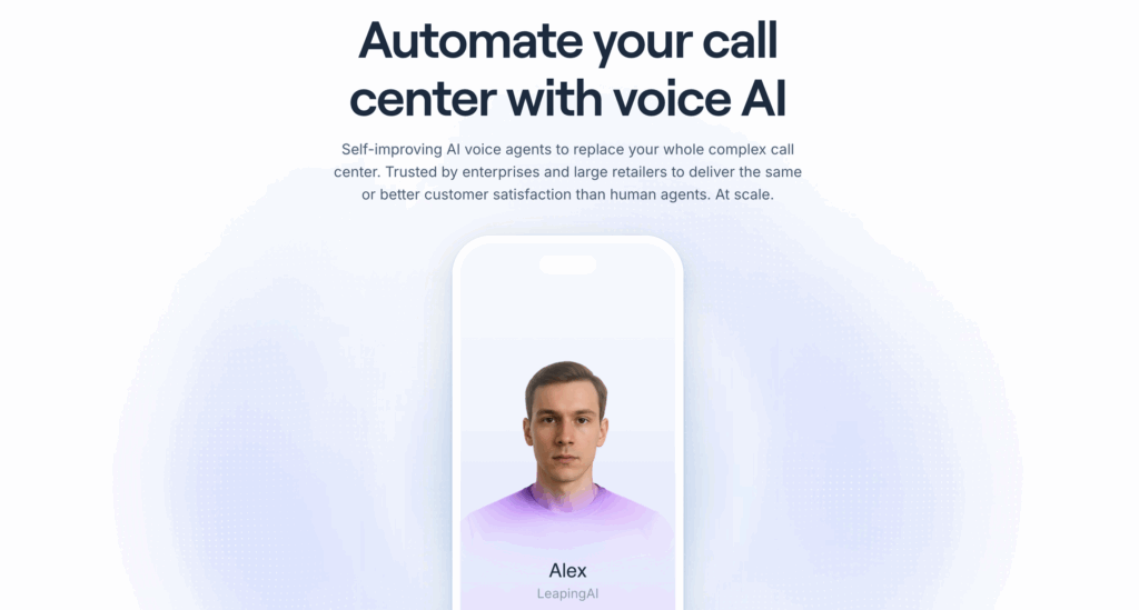Leaping AI builds voice agents tailored for businesses managing over 100,000 calls annually. These human-like AI agents handle complex workflows, automate up to 70% of customer support calls, and consistently maintain around 90% customer satisfaction – all while improving over time.