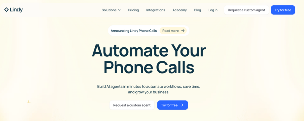 No-code AI builder, Real-time call automation, CRM integration, Multilingual, SMS