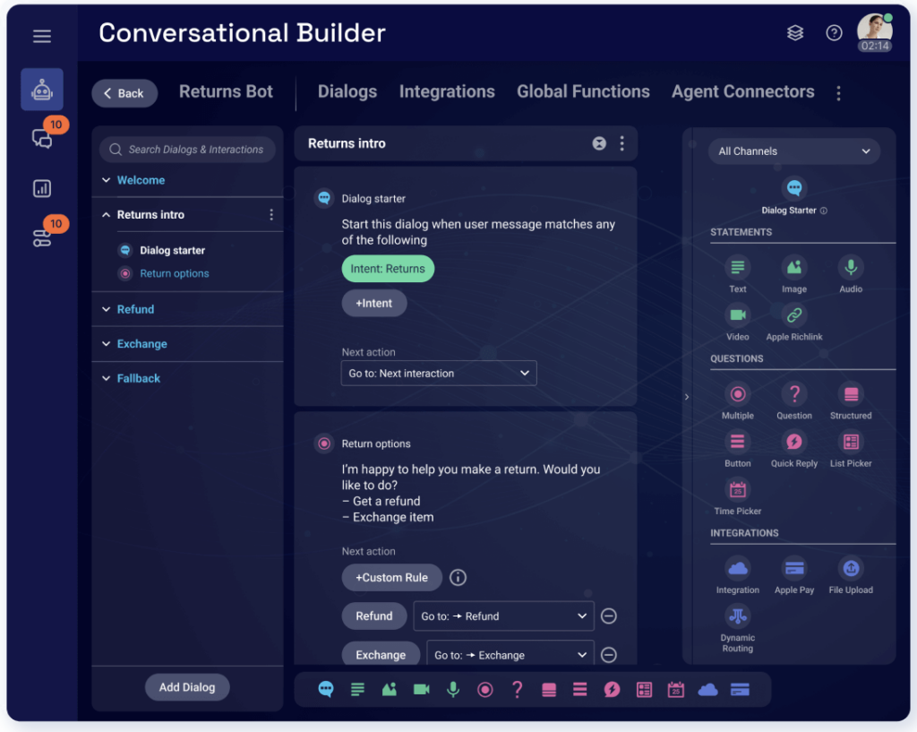 - Omnichannel Deployment: Build once and deploy across voice, text, and social platforms.