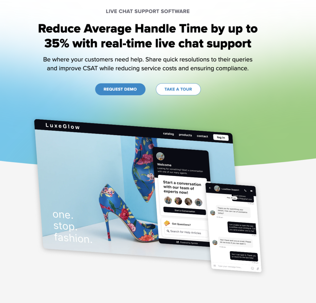 For complex sales inquiries and customer support, live chat bridges the gap between automation and human interaction. Sales and support reps can jump in when AI chatbots need assistance.