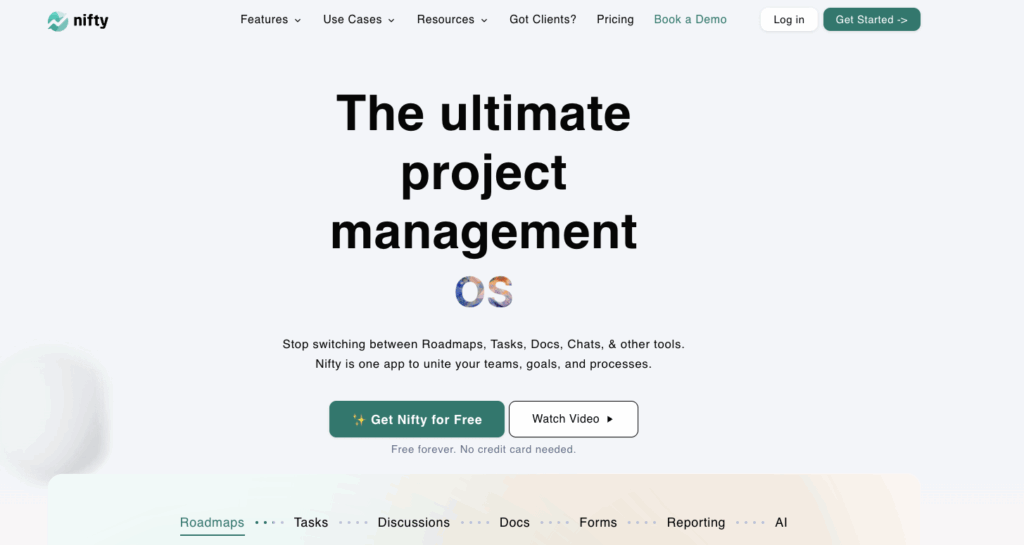 Nifty is a project management-first tool with CRM capabilities, perfect for service providers and agencies who want task and client management in one workspace.