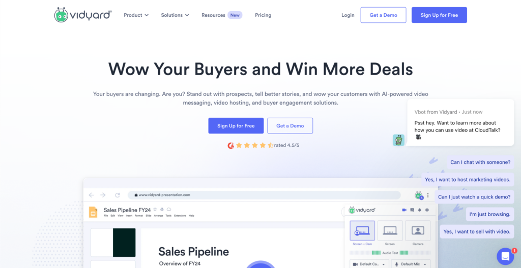 Vidyard is a leading video messaging and hosting platform that helps sales teams connect with prospects and close deals using personalized videos.