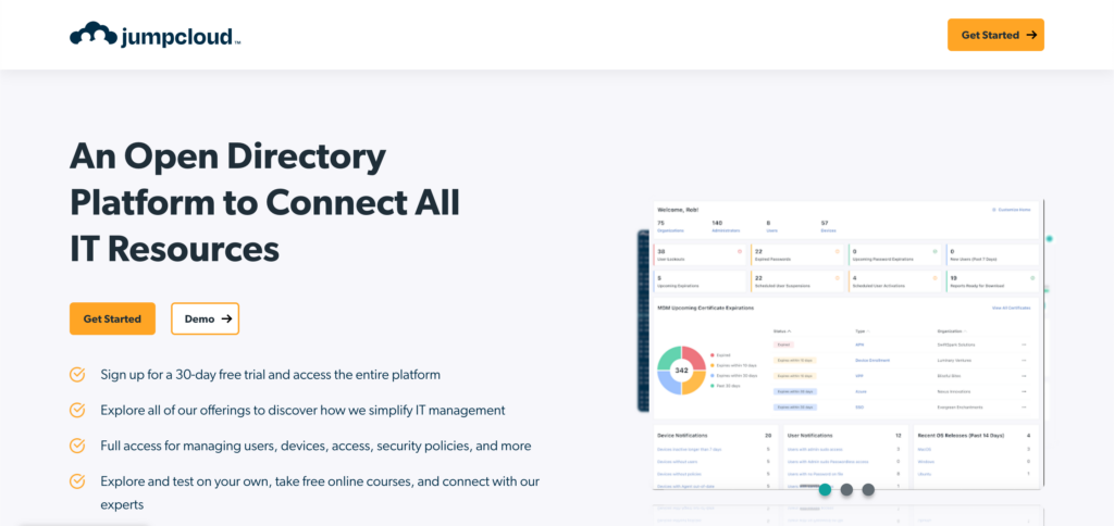 JumpCloud is a cloud-based platform that makes managing user identities and access across different systems easier.