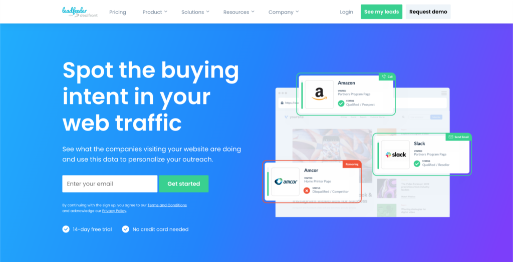 Leadfeeder is a sales intelligence platform that helps businesses identify companies visiting their websites and tracks how they interact with content.