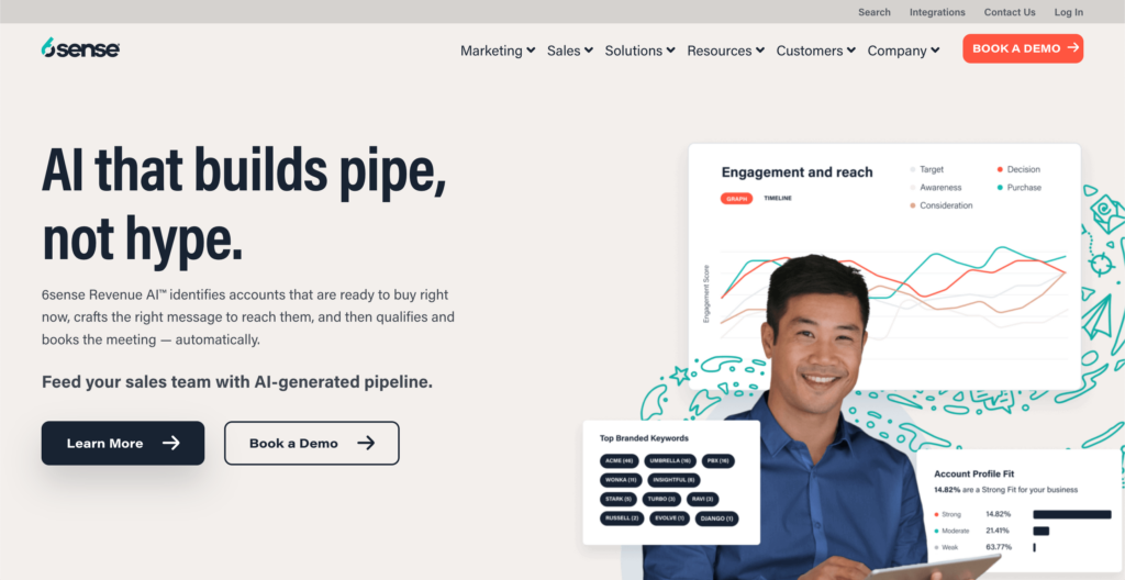 6sense is an advanced account-based marketing (ABM) platform that uses AI to help B2B companies identify buying signals, target important accounts, and boost revenue.