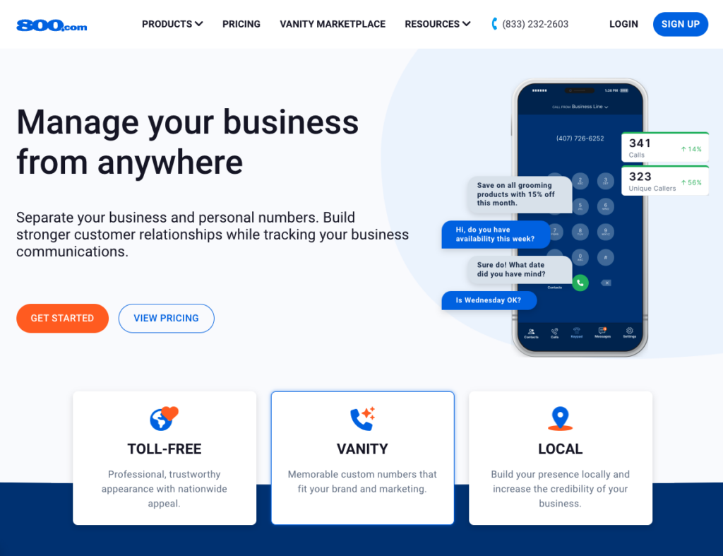 - Competitive pricing for vanity numbers