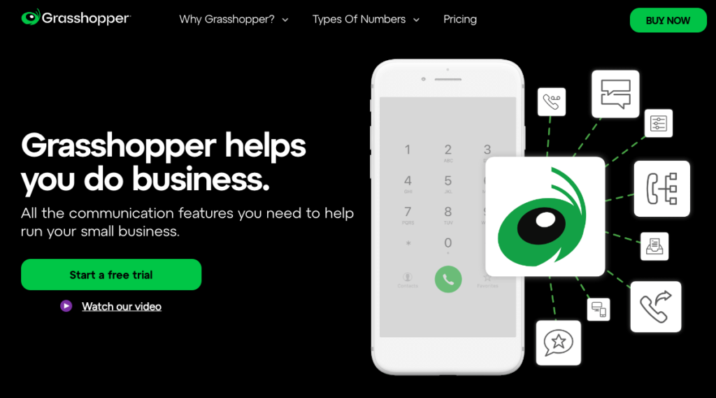 Since 2003, Grasshopper has provided toll-free, local, and vanity numbers with consistent features across plans. However, it lacks key features like call recording, automated call routing, and MMS support for toll-free numbers, making it less ideal for teams needing advanced functionality.