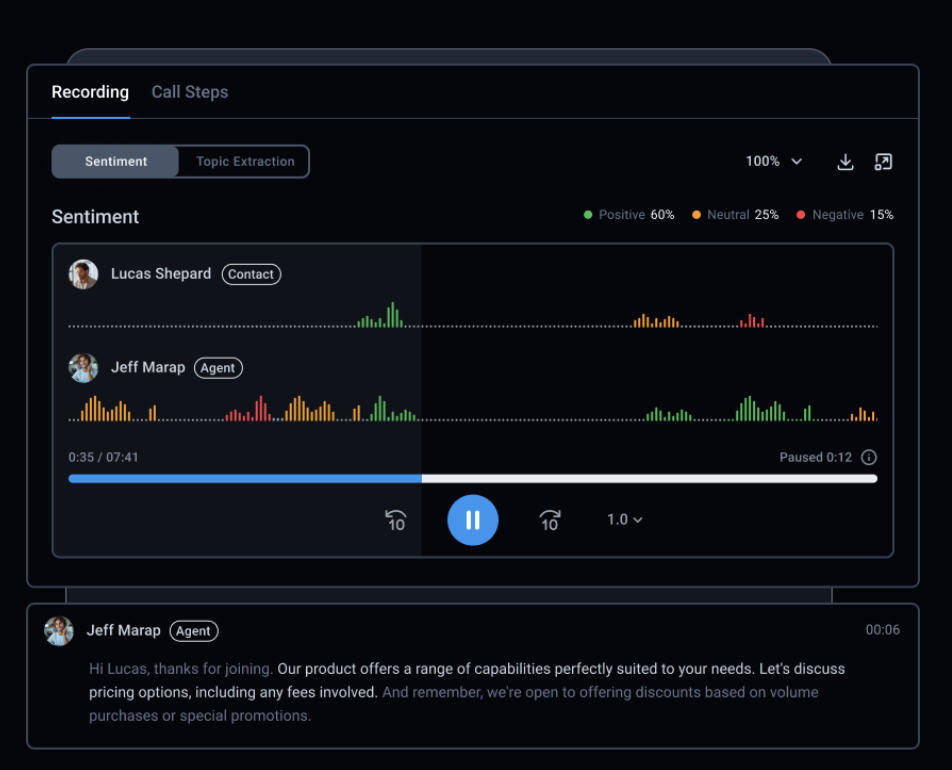 - Compliance is enforced in real-time, with AI detecting missed disclosures or risky language during live or post-call reviews.