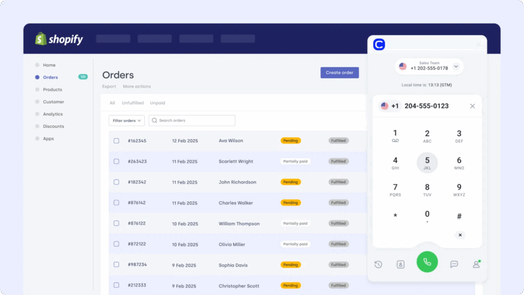 Data-rich dashboards using call details like timestamps, outcomes, and custom fields