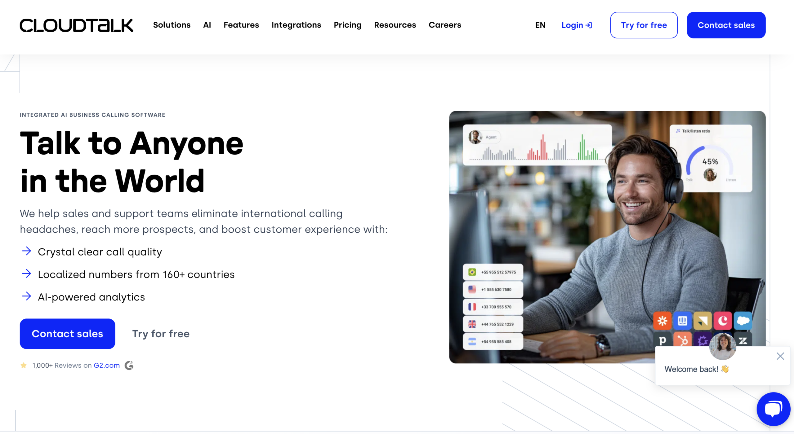 It supports international numbers for 160+ countries, and you can instantly start optimizing your workflows with advanced features, including IVR, click-to-call, power dialers, and more.