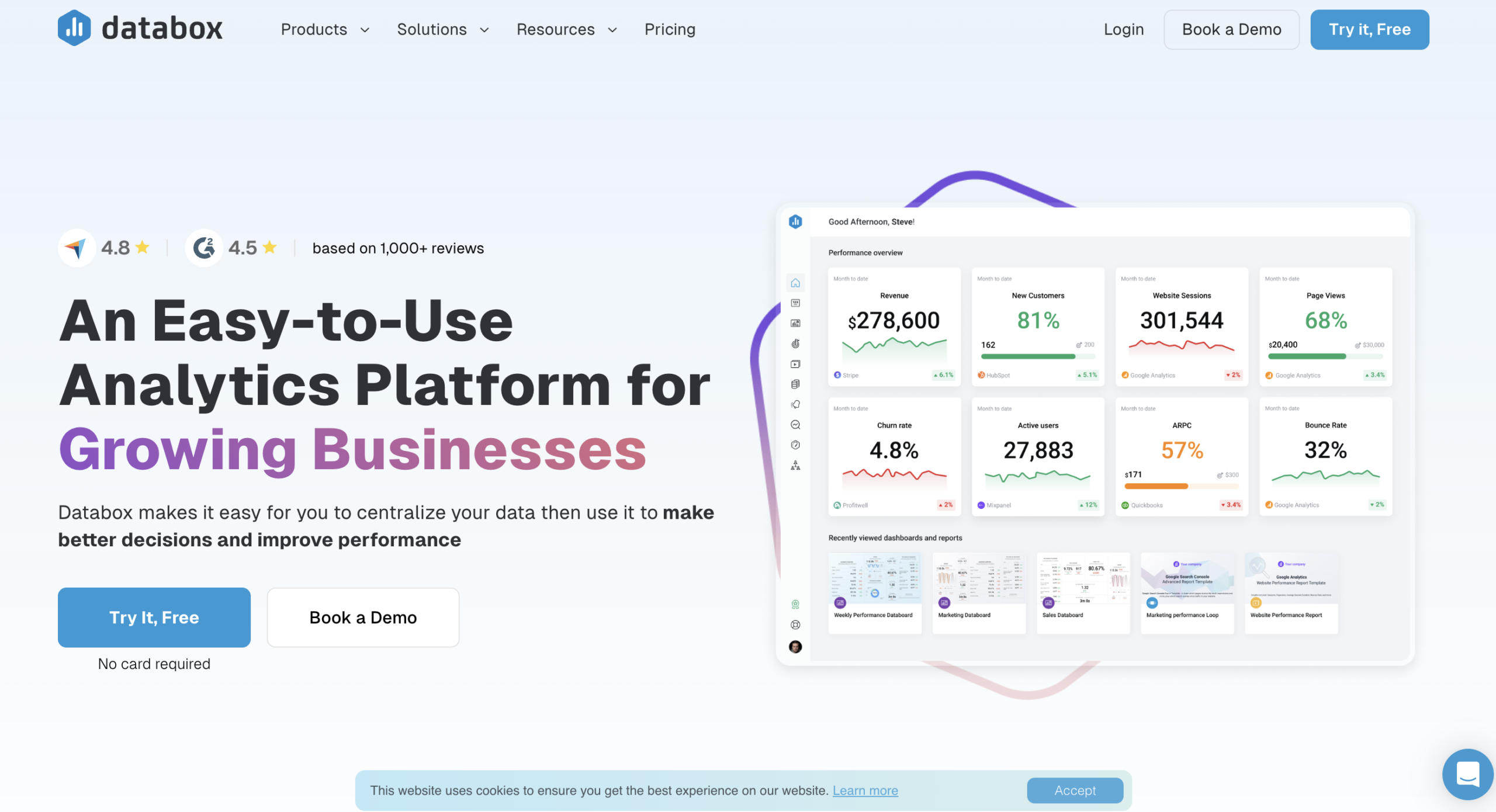 Databox helps you create detailed, easy-to-understand sales reports (call center reporting as well).