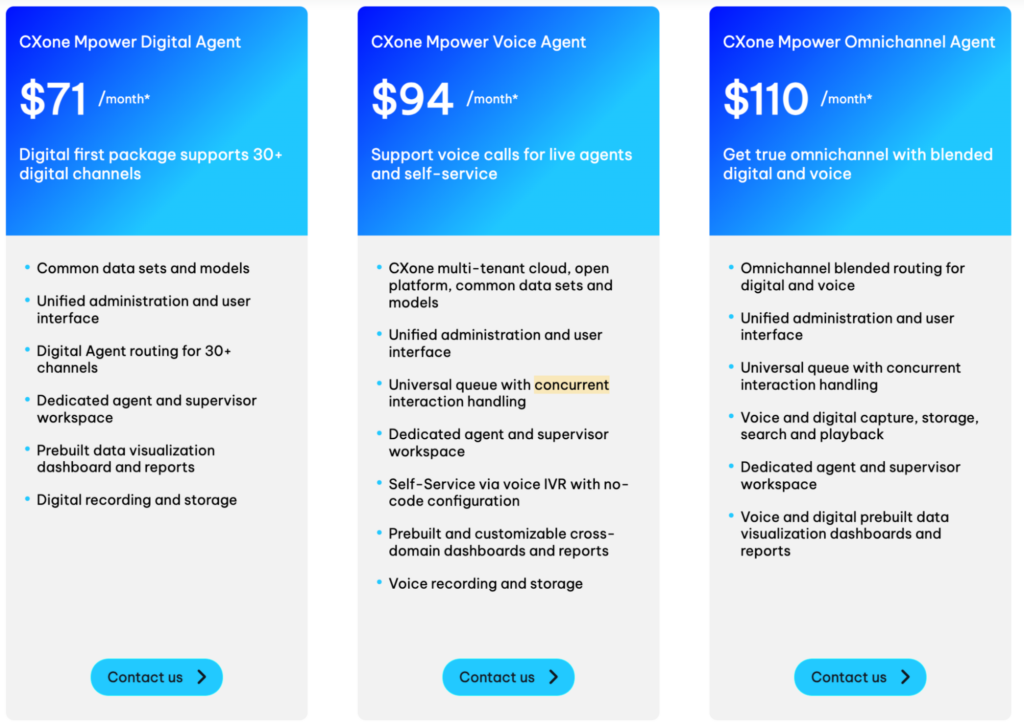 For all tiers, users are required to contact for pricing.