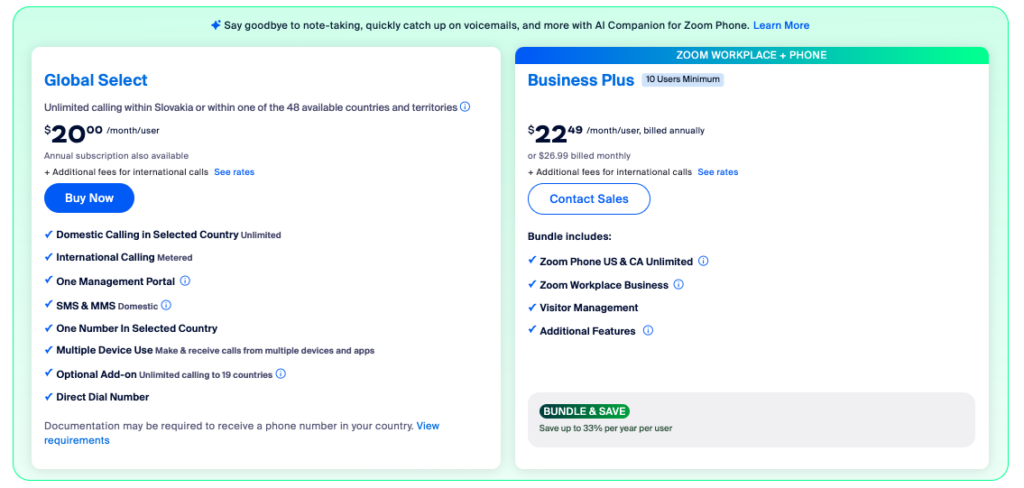 Zoom Phone extends the popular Zoom Meetings platform to voice calls. It offers seamless integration with Zoom’s video conferencing features, making it a strong contender for businesses already using Zoom.