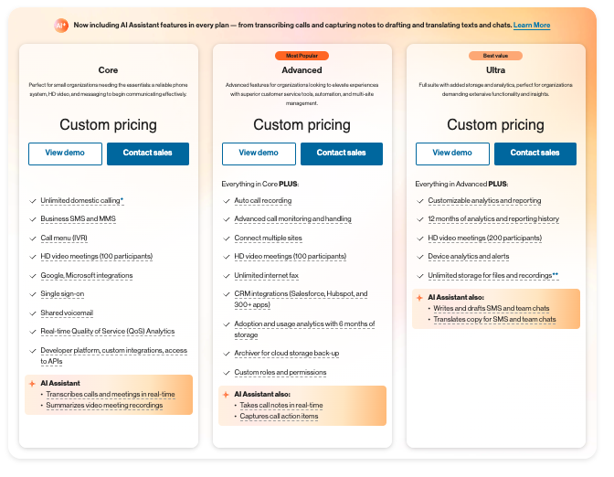 Advanced AI capabilities, intelligent call-routing, many integrations