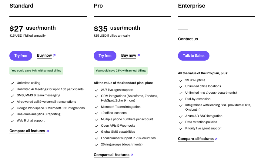 RingCentral provides a seamless communication experience, integrating with popular business tools like Microsoft 365, Google Workspace, and Slack. This makes it ideal for businesses looking to streamline their communication and collaboration efforts.