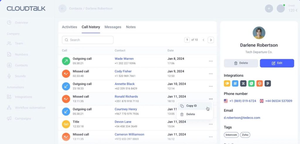The platform integrates with over 35 CRM, helpdesk, or ecommerce tools. CloudTalk also comes with intelligent call routing tools that help you improve your workflow.