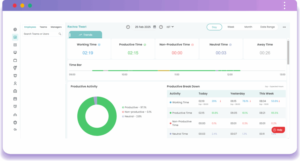 Time Champ is a powerful employee monitoring software designed for today’s remote and hybrid workplaces. It enables companies to track work hours, application usage, idle time, and productivity trends all while ensuring transparency and efficiency. Real-time insights, detailed activity reports, and customizable tracking features make it easier for managers to support their teams and improve overall performance.