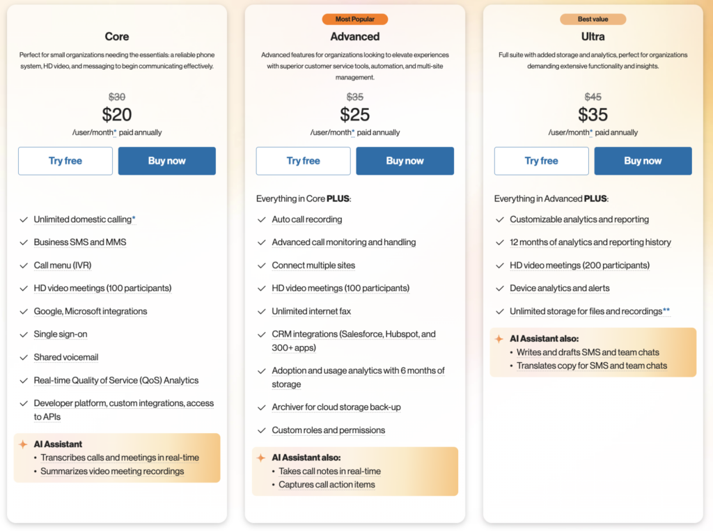 RingCentral is a cloud-based VoIP phone system that provides voice, video, messaging, and collaboration features for businesses of all sizes. With a strong omnichannel experience and integration capabilities, it’s a well-known solution in the business communication space.