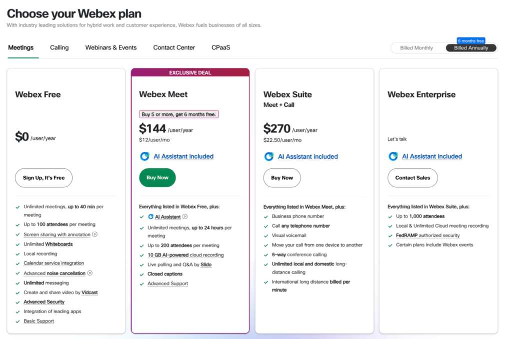 - Webex Calling & Meetings: VoIP-based phone system with enterprise-grade video conferencing