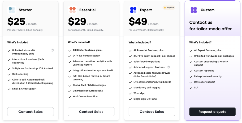 Dialpad is well-suited for sales organizations of all sizes that prioritize agent efficiency, AI-driven insights, and real-time analytics. It’s a good choice for teams looking to enhance call tracking and reporting, though businesses needing advanced outbound automation or extensive integrations may want to explore other solutions.