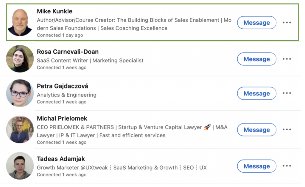 “Hey, I saw that you know Mike Kunkle. His book The Building Blocks of Sales Enablement inspired me! What do you think about his work?”
