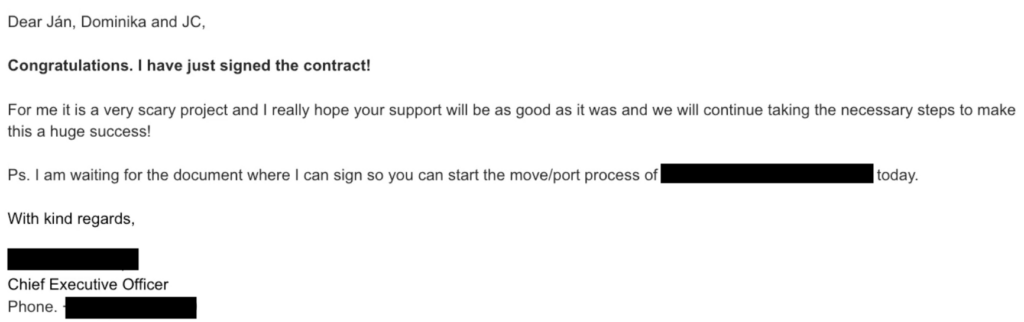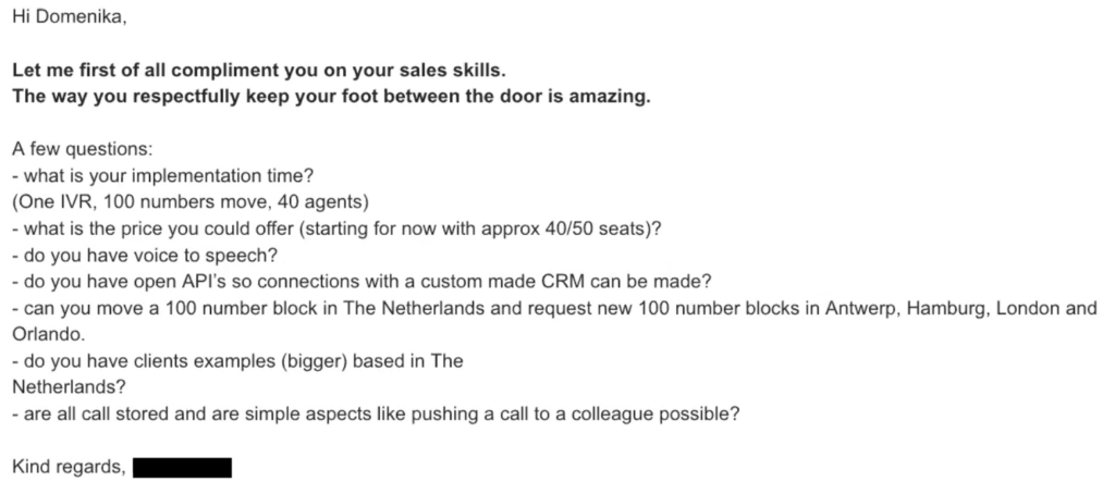 Dominika’s tenacity, sales skill, and buyer-enablement approach was rewarded. The prospect was once more open to considering CloudTalk’s offer and after a little more back-and-forth…