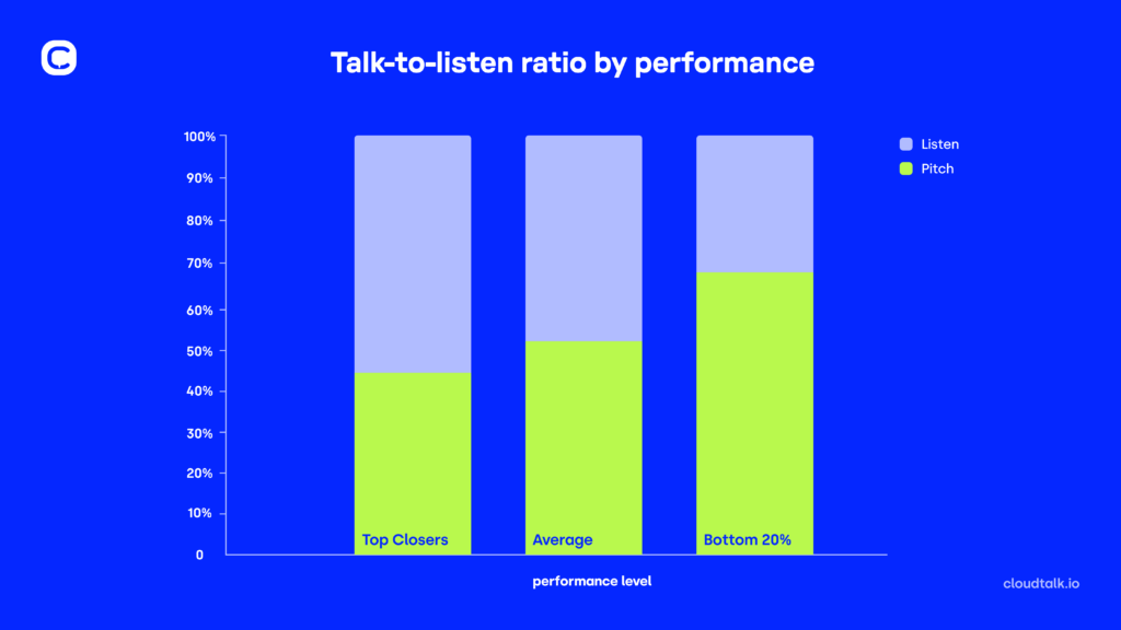 You can read more about the talk-to-listen ratio in our blog on sales small talk.