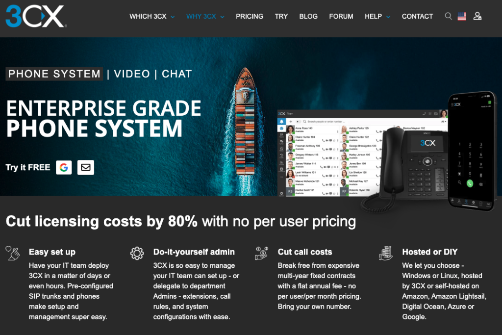 3CX is an open-platform business phone system offering on-premise or cloud-based PBX voice calling, video conferencing, text messaging, live website chat, and analytics.