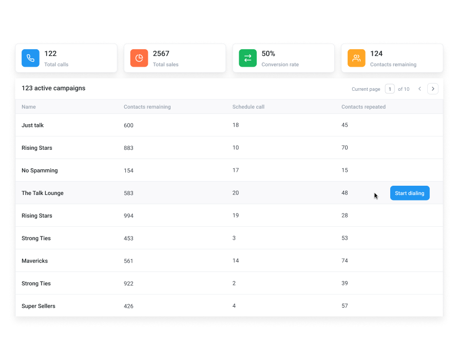 Choose a dialer with a user-friendly interface that your agents can quickly adopt. Complicated systems can slow down productivity and create unnecessary roadblocks. - Look for CRM integrations: