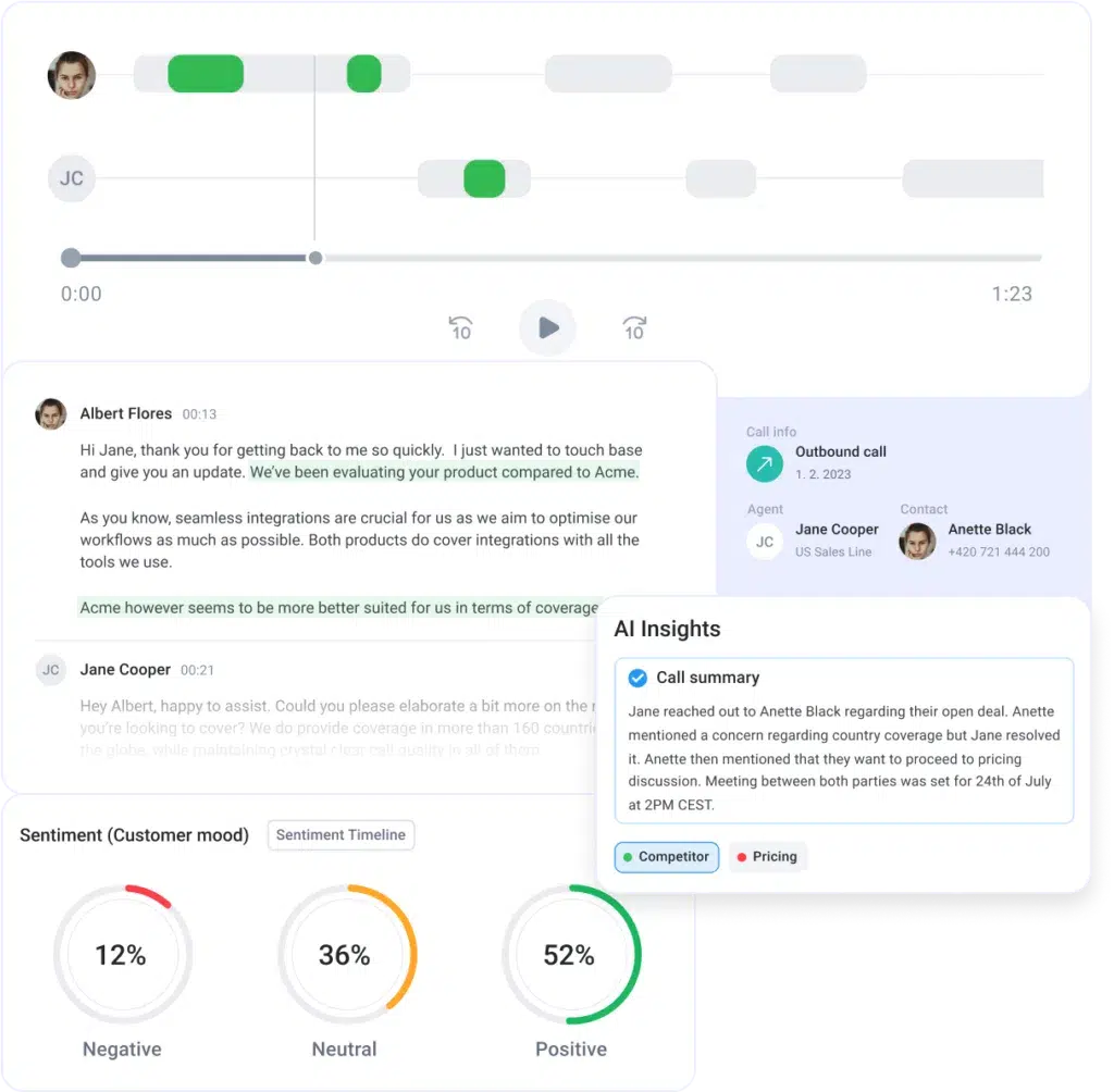 For example, AI can alert customer service supervisors if a customer has a negative sentiment, enabling them to jump on an agent’s call and rectify the situation. Sales teams can use positive sentiments to more accurately infer lead interest.