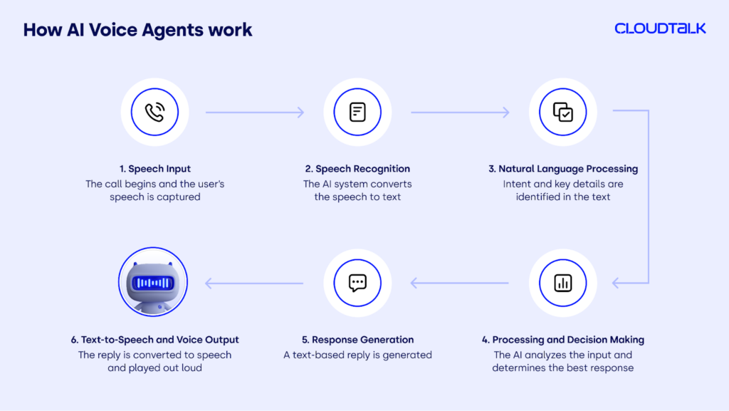 Let’s break it down. You don’t need a PhD in machine learning to get how this works. Here’s what actually happens when someone talks to your AI voice agent.