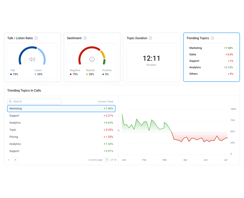 And here’s the best part: it’s not just basic speech-to-text. It’s a call center voice analytics that not only delivers highly accurate transcripts but also gives you deeper insights into every conversation. You can understand your customers and improve your team’s performance.