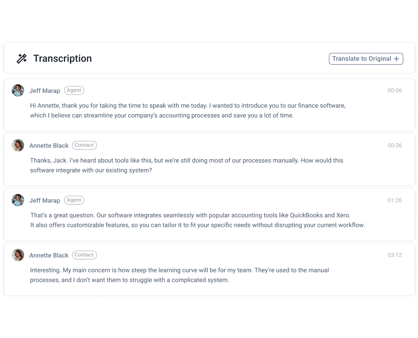 Call transcription is the process of automatically converting spoken conversations into written text using AI call transcription software. This technology uses advanced speech recognition to deliver automated call transcriptions that are fast, accurate, and ready to use.