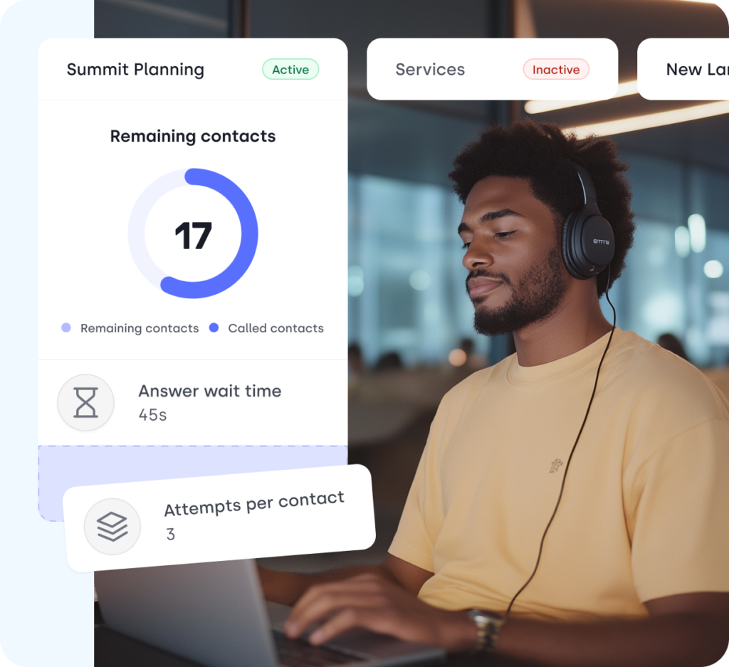Stay in control of your call campaigns by seamlessly integrating your CRM. Easily import lead lists, segment contacts, and launch targeted campaigns with just a few clicks, ensuring your outreach is precise and effective.