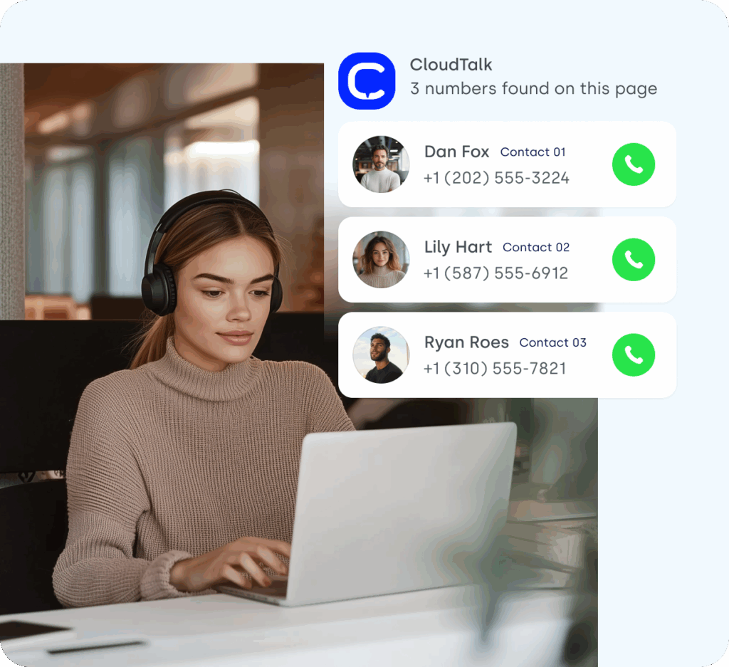 Turn every phone number into a launchpad for faster conversations. With CloudTalk’s click-to-call feature, your team can skip manual dialing, speed up outreach, and start more calls at the perfect moment.