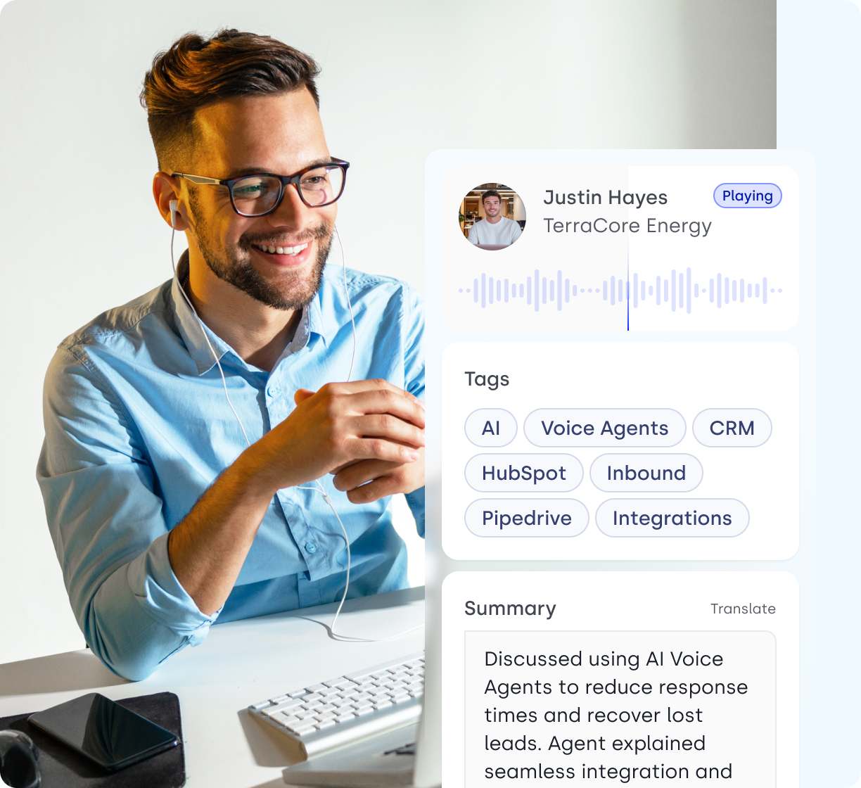 - Saves agents 5+ minutes per call with auto-tagging and summaries