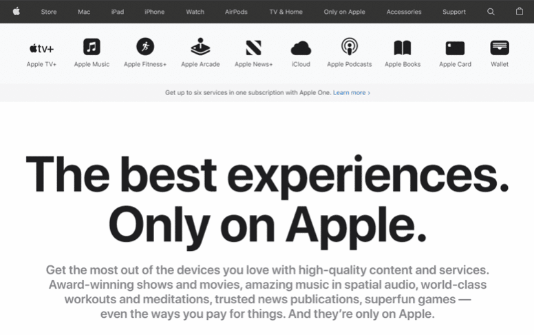 Dieses einfache, geradlinige Angebot beginnt mit einer auffälligen Überschrift in zwei Sätzen: „Die besten Erlebnisse. Nur bei Apple.“. Der erste Satz ist selbstbewusst und gibt den Ton für den gesamten Text vor. Das Produkt, Apple, sollte mit den besten Erfahrungen in Verbindung gebracht werden, Punkt. Außerdem können diese „besten Erfahrungen“ nur mit Apple gemacht werden. Eine ziemlich überzeugende Botschaft, nicht wahr? Im weiteren Verlauf der Präsentation werden die vielen Vorteile von Apple Produkten beschrieben, wobei der Schwerpunkt auf hochwertiger Unterhaltung liegt. Insgesamt verdeutlicht der Beitrag, dass es von Vorteil ist, wenn Sie Ihre Verkaufsargumente selbstbewusst formulieren.