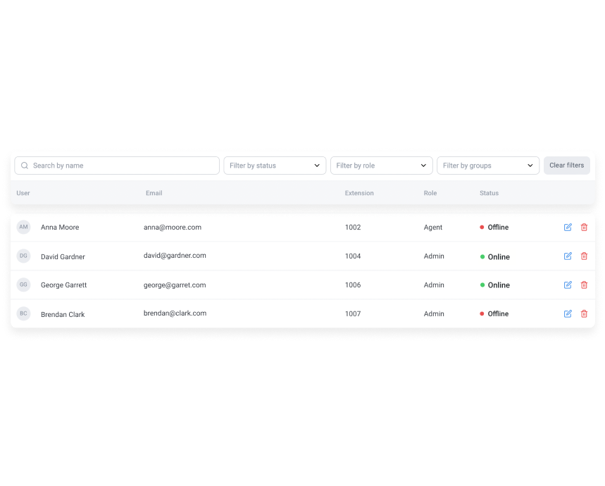 Mit Durchwahlen müssen sich Agenten keine Telefonnummern merken und manuell eingeben, was den Kommunikationsprozess vereinfacht. Darüber hinaus können Sie mit internen Telefonanschlüssen das Unternehmen in verschiedene Segmente unterteilen (z. B. Konferenzräume, Stockwerke, Abteilungen, globale Standorte usw.).