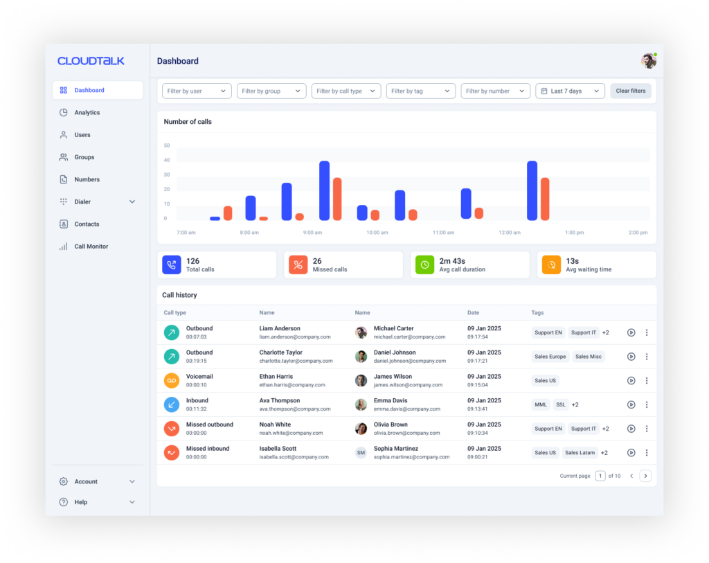 Financial institutions rely on dedicated call centers to handle sensitive transactions and account inquiries. A regional bank, for example, might use CloudTalk’s software for: