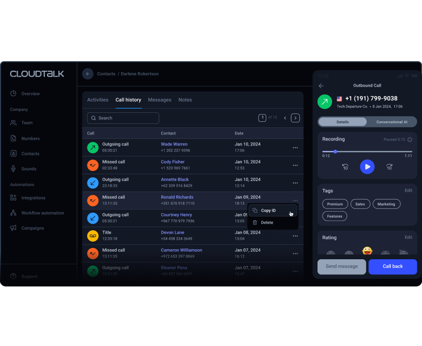 1. Asegúrate de que cumples los requisitos: Confirma que estás en un plan Experto o Personalizado y que el servicio de asistencia de CloudTalk ha activado la función de transcripción de voz a texto para tu cuenta.