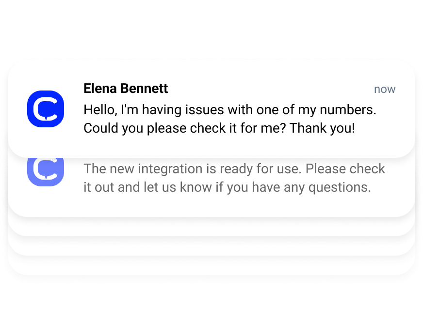 No te pierdas ni una sola interacción con el cliente. Recibe notificaciones automáticas de llamadas entrantes o perdidas, mensajes de voz y mensajes en cuanto lleguen.